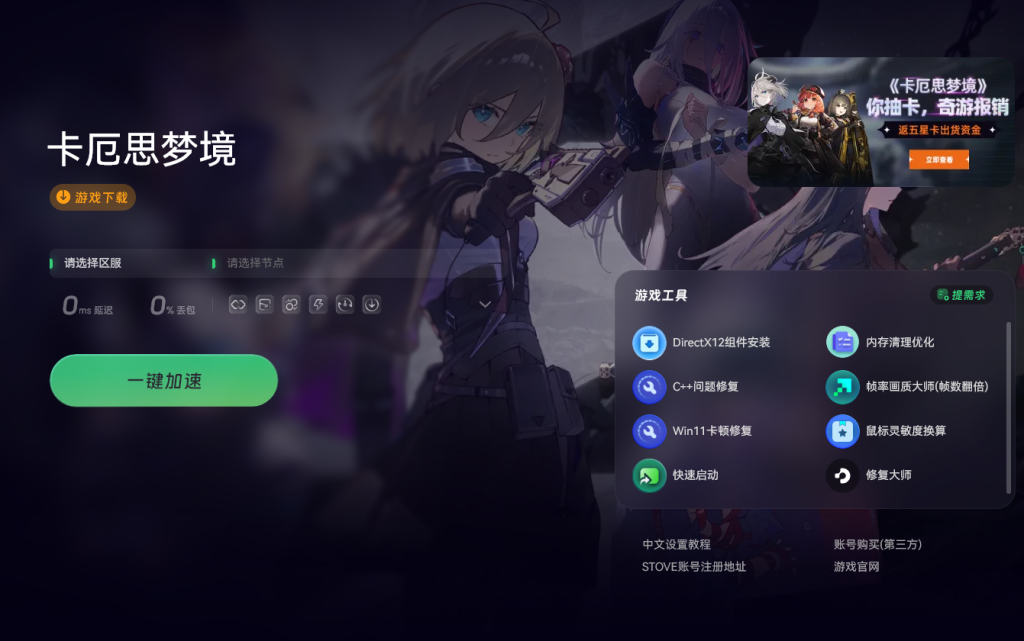 注册并登录账号后就可以开始下载游戏并进行游玩了。在游玩过程中,要始终保持奇游加速工具对卡厄思梦境的加速状态。因为一旦停止加速,游戏就可能会出现报错等问题,影响游戏体验。