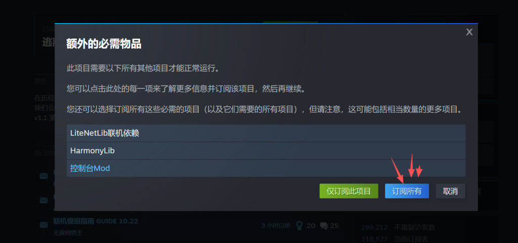 订阅所有,就安装好mod了