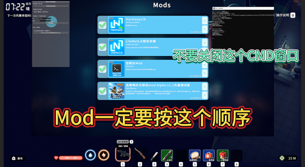 然后我们按顺序并打开mod,看到有这两个窗口就成功了,第一次开Mod需要重启游戏哦。