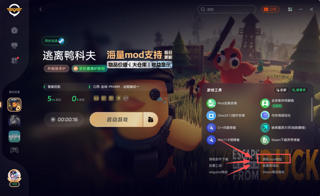 为例流畅访问Steam创意工坊,可以使用奇游加速《逃离鸭科夫》点击右侧的联机Mod地址
