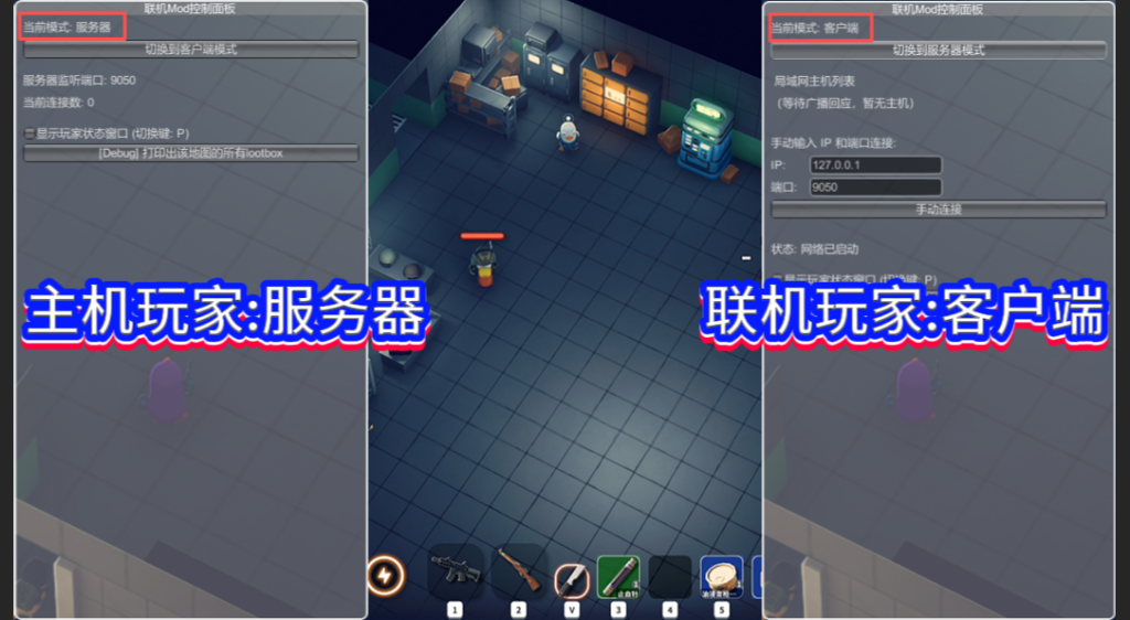 联机玩家都进入地堡大厅,按下home键呼出联机软件,主机玩家切换为服务器模式,加入联机的玩家切换为客户端模式。