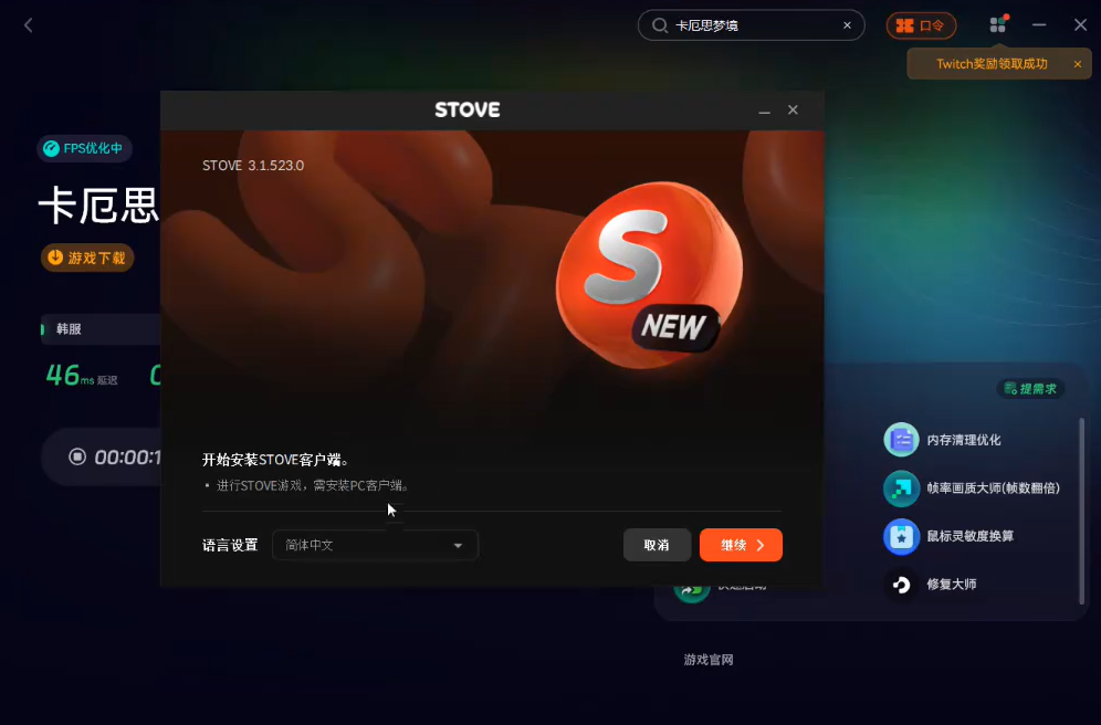 加速完成后点击游戏下载工具,确定下载。下载完成后,点击立即安装,奇游会自动打开游戏官方启动器进行安装。安装完毕,游戏会自动启动。