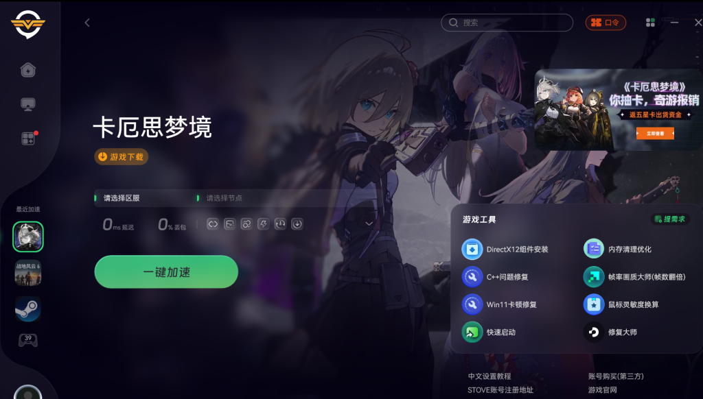 一、使用奇游加速器优化网络,打通登录通道