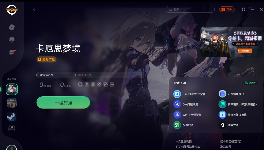 若上述方法未完全解决问题,可进行基础排查。一方面清理设备后台:电脑端按 “Ctrl+Alt+Delete” 打开任务管理器,结束占用内存与 CPU 较高的进程(如视频软件、下载工具);移动端双击多任务键,划除不必要 APP,仅保留加速器后台运行,清理后建议重启设备。另一方面修复游戏文件:通过 STOVE 平台找到《卡厄思梦境》,使用自带 “游戏修复” 功能,补全损坏或缺失资源,避免文件问题引发故障。