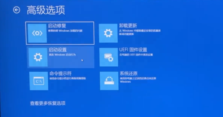 进入后选择疑难解答进找到高级选项,选择UEFI固件设置进入,点击重启。