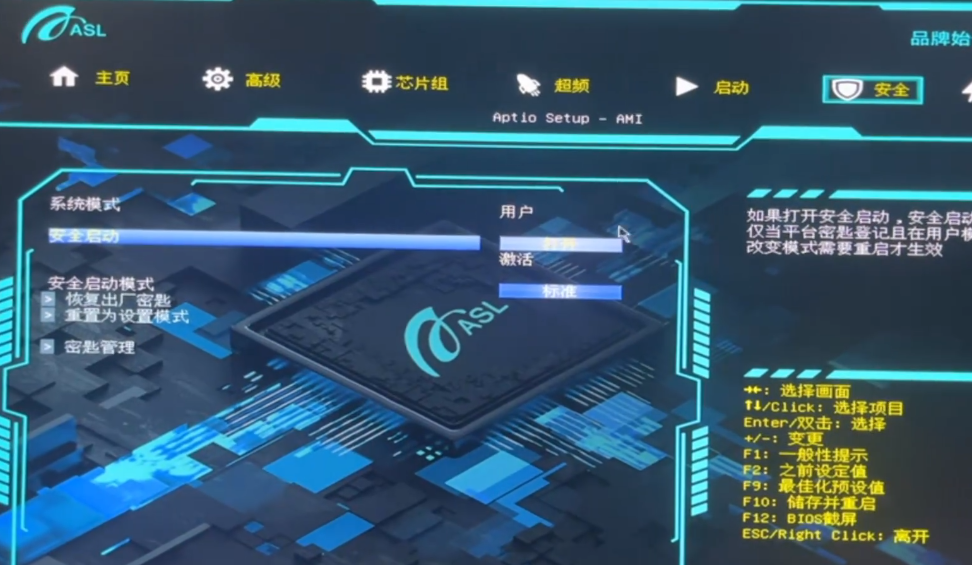 然后点击安全,在安全中找到安全启动,将后面选择打开,然后保存,重启一下,再重新启动游戏就可以了。