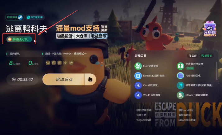 接下来,回到奇游加速工具,找到“Mod下载”区。