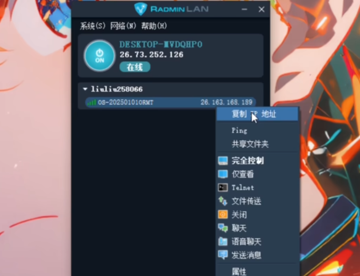 建好房间后,房间里会显示主机的IP地址,直接右键就能复制。