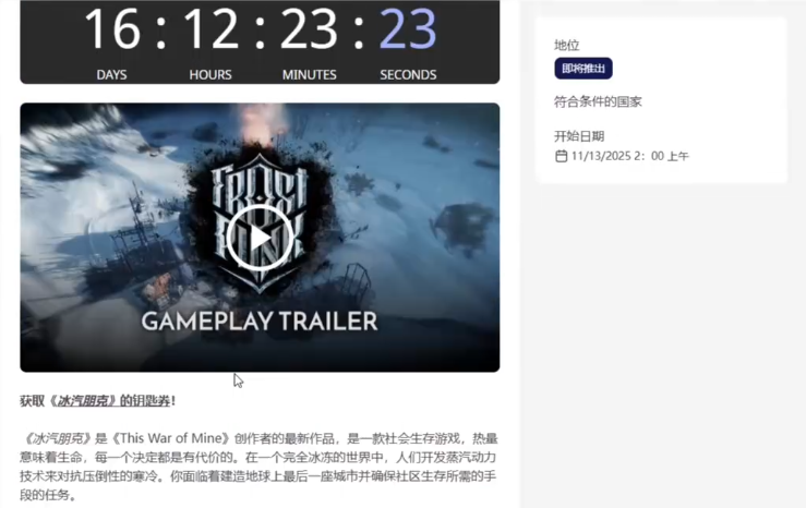 进去之后第一眼就能看到《冰汽时代》的领取倒计时。