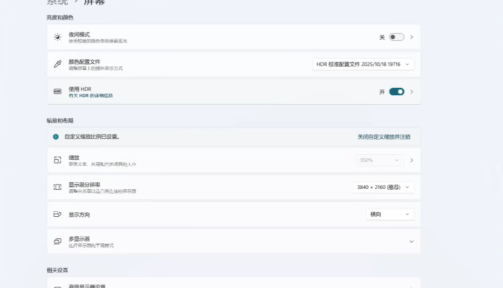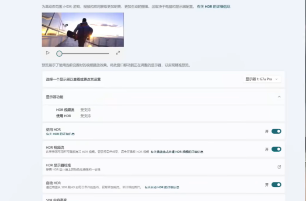 不过开启HDR后,其他地方的亮度调节将失效。若想调整SDR亮度,可按照图示方法操作。