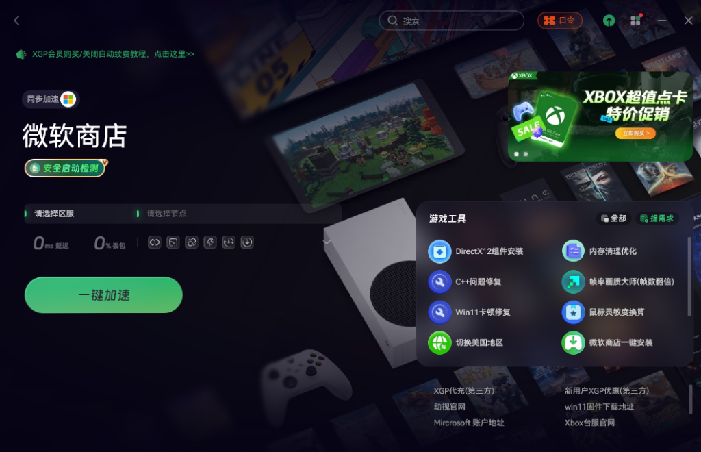 因为微软服务器的原因,商店有时候会加载不出来。打开奇游加速工具,搜索“微软商店”进行加速。完成之后就能顺利打开商店并下载那个校准软件了。