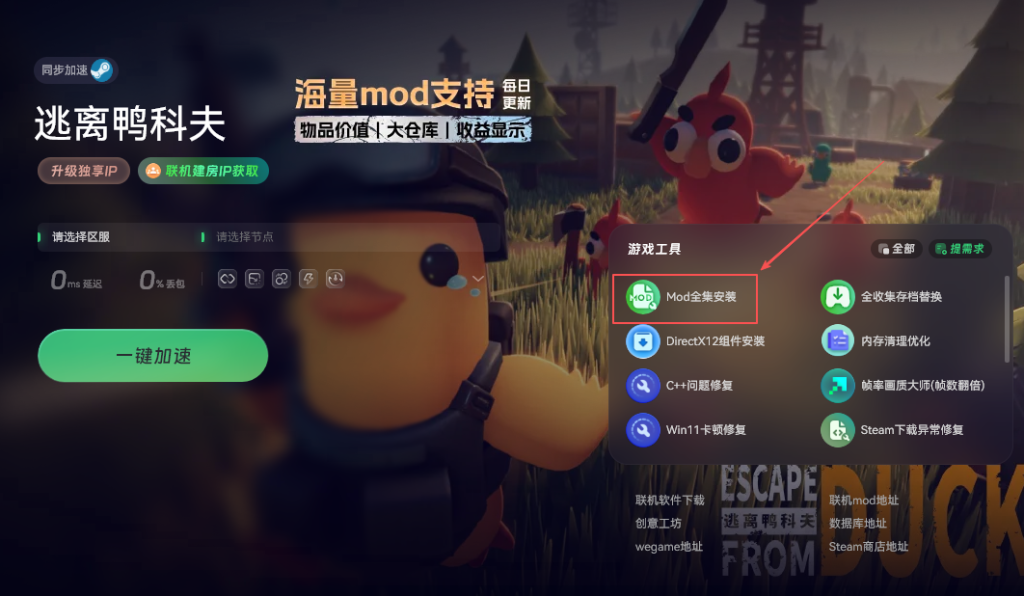 加速成功后,界面右边一般会有个“mod全集”的按钮,点进去能看到不少mod。