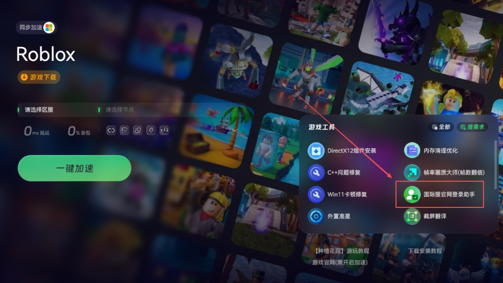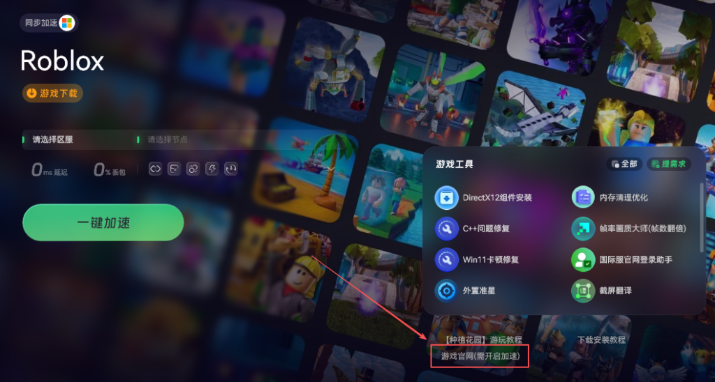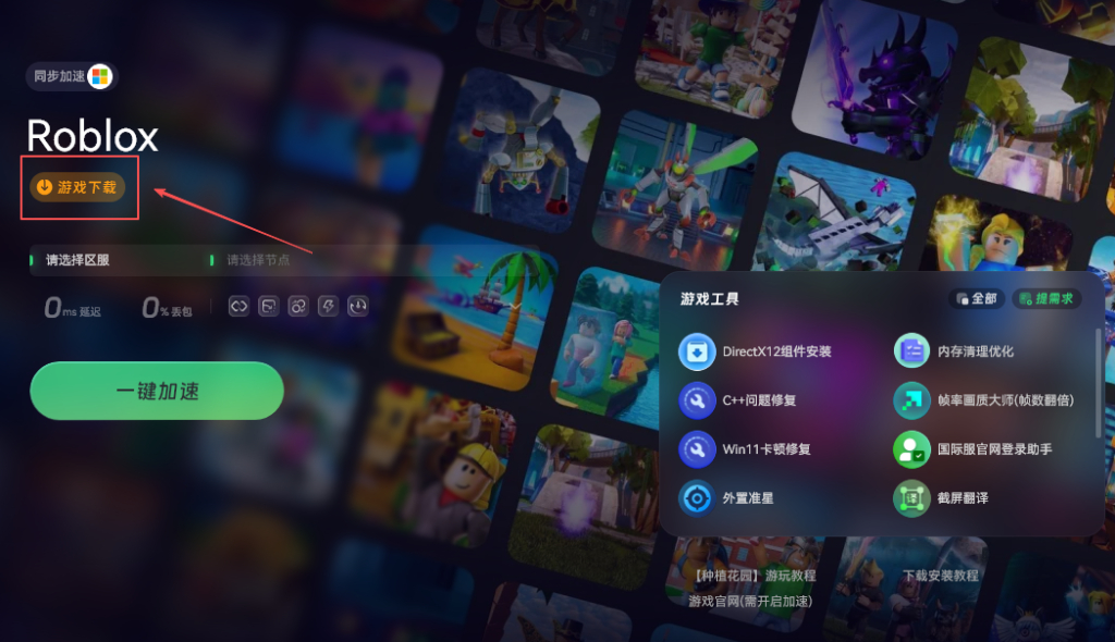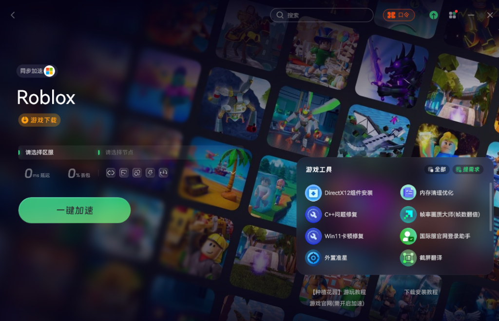 首先,打开奇游加速工具,直接搜索ROBLOX,点一键加速。