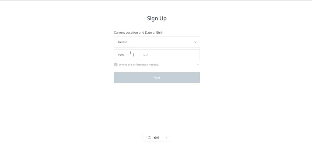 在注册NC账号时地区依然选择台湾,并输入生日信息,点击下一步。随后输入邮箱地址进行注册。