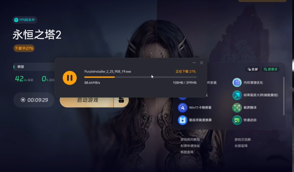 账号注册成功并登录后进入游戏启动器界面。在此找到永恒之塔2点击“预约安装”按钮,游戏将自动开始预下载,开服时即可直接进入。