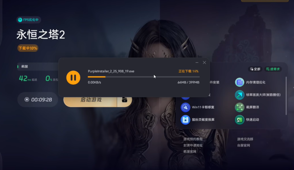 下载完成后,点击立即安装,奇游会自动帮你打开purple客户端的安装包。进入安装包后,在首页就能看到永恒之塔2,点击进入,再点击预约安装按钮。这样等游戏开放预下载时,就能自动安装了。