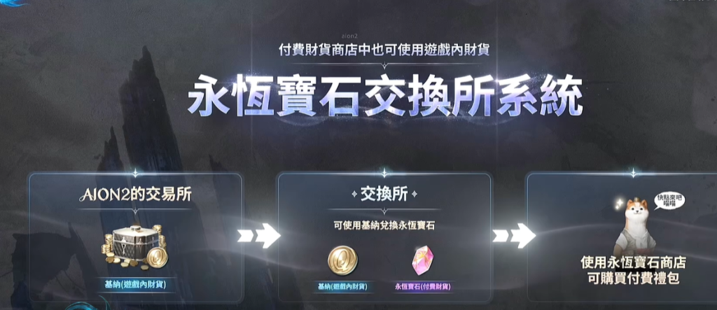货币与交易系统方面,基纳主要通过副本、任务、采集等途径获取,用于在交易行购买装备和材料,且可与永恒宝石通过官方兑换系统互换。永恒宝石需充值获得,用于购买商城道具,如时装、仓库扩容等。