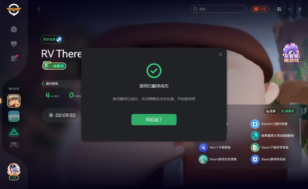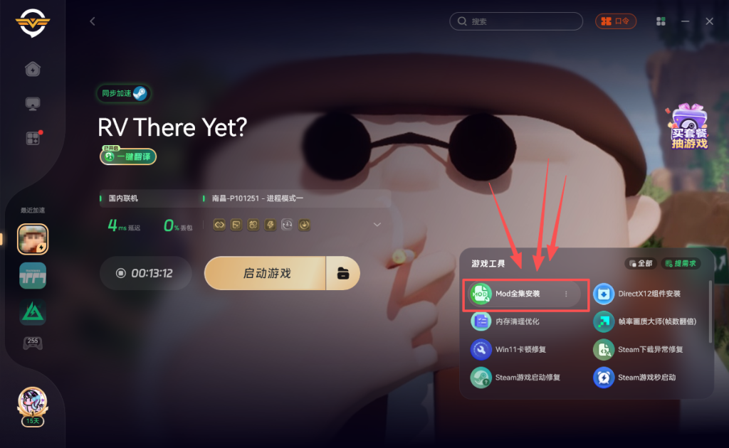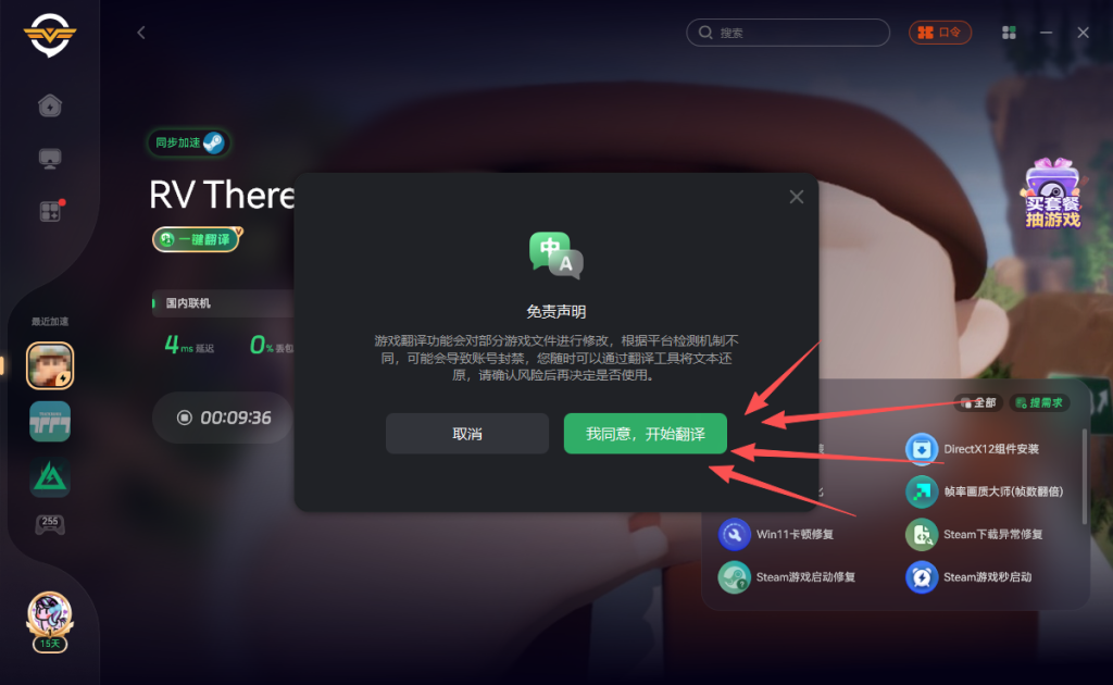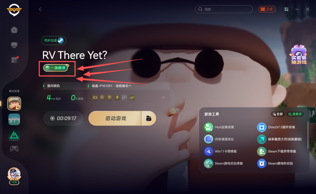 首先奇游支持一键汉化,打开奇游加速《RV There Yet》点击绿色的一键翻译