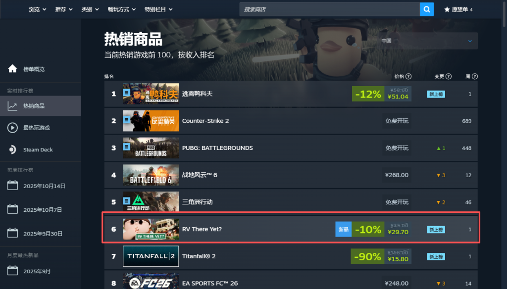这款名为《RV There Yet》的游戏21号上线以来一直在Steam热销榜上。