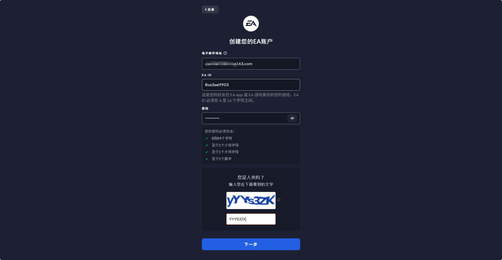 选择地区填写生日,输入邮箱密码用户名等即可完成注册。