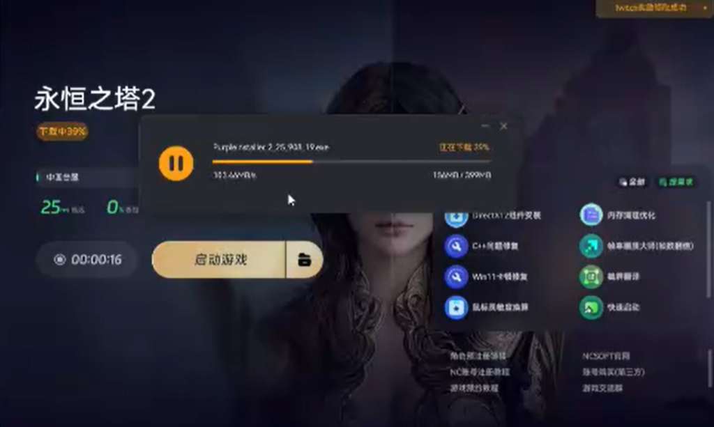 下载完成后玩家需点击安装包进行安装。安装完毕后打开purple程序,并在其中登录自己的NC账号,开始下载游戏。