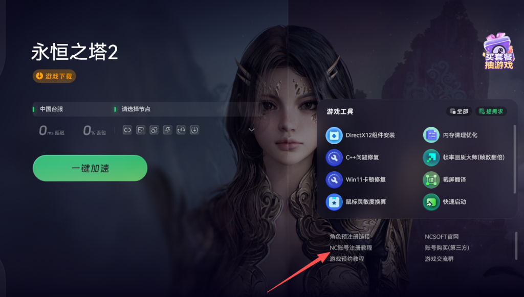 对于没有NC账号或不知如何注册的玩家,可返回奇游加速页面,点击左侧的事前预约教程,里面会有详细的账号注册指导。
