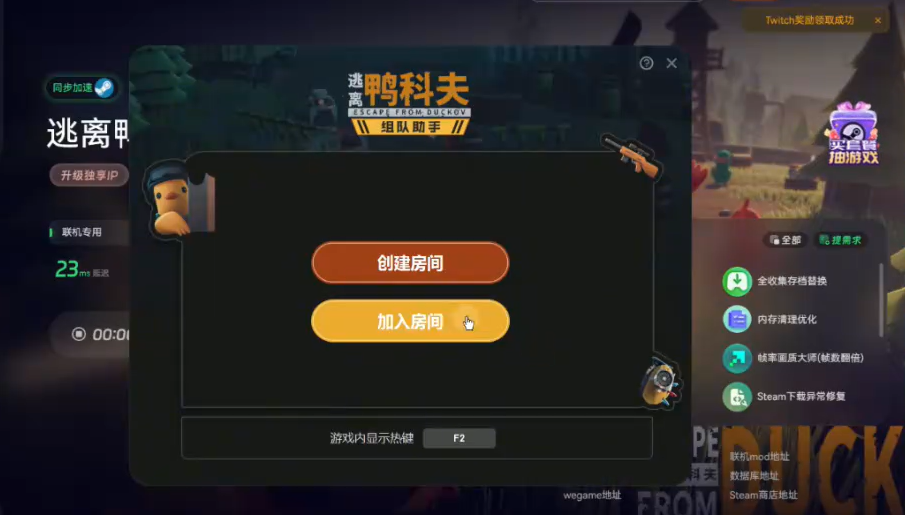 加速完成后注意不要急于启动游戏,打开联机助手,再启动逃离鸭科夫进入地堡界面。