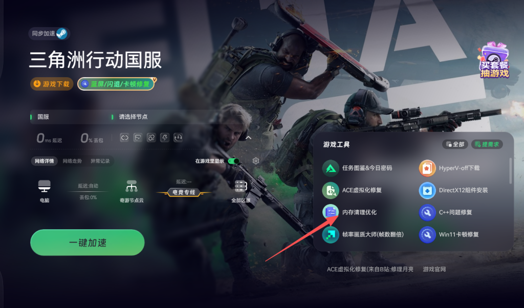 内存占用过高也是导致游戏卡顿掉帧的常见原因之一。奇游加速工具内置了内存清理工具,玩家们可以使用这一功能结束不必要的后台进程,释放内存资源,为游戏运行腾出更多空间。通过清理内存占用,玩家们能够显著提升游戏运行的稳定性。