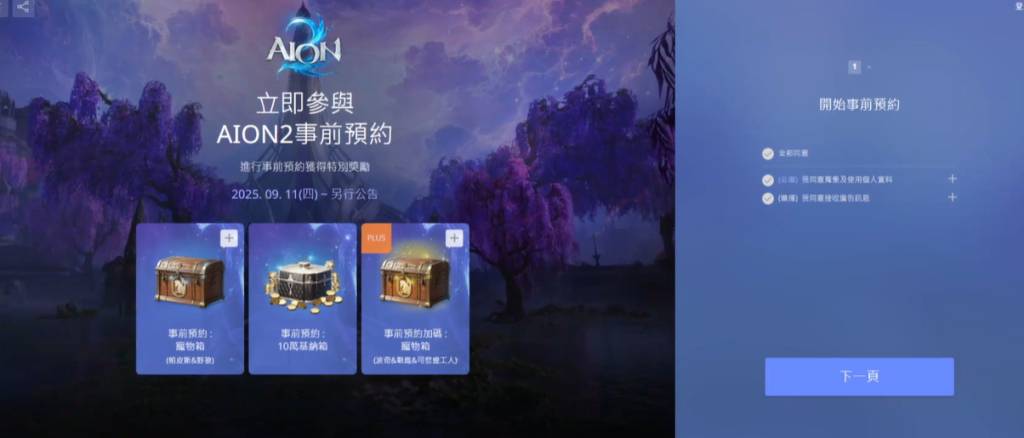 完成注册后返回事前预约页面,点击全部同意,再点击下一页。在页面中选择自己计划游玩的平台,最后点击完成事前预约。