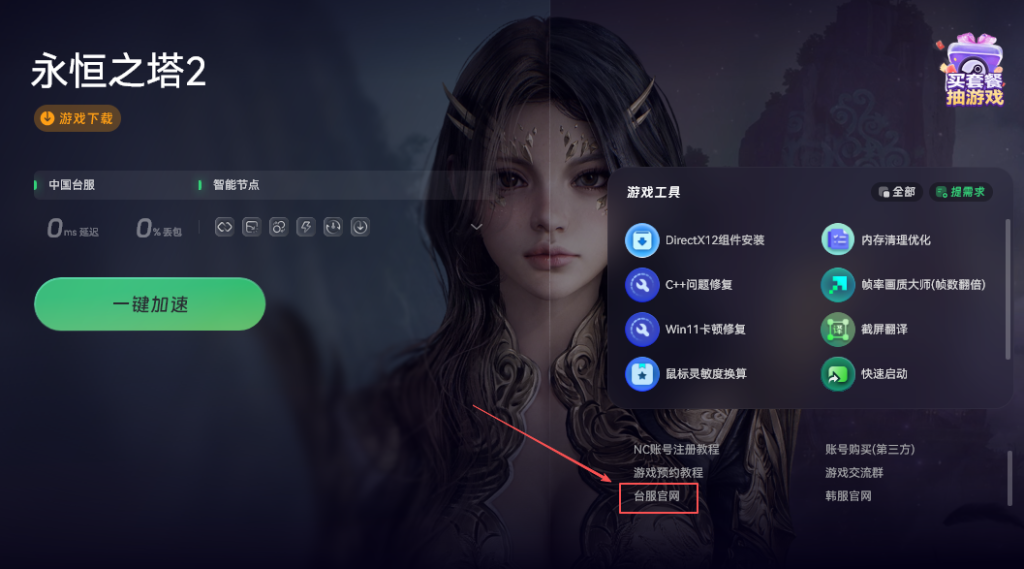 加速成功之后,界面通常会有一个台服官网的入口,直接点进去就行。