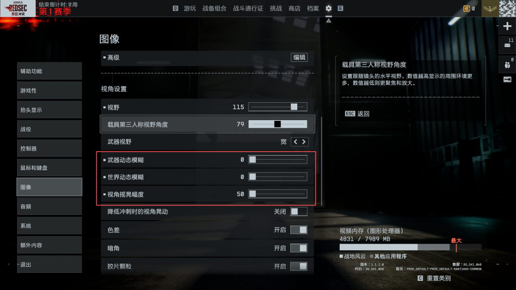晕3D的玩家动态模糊关闭,视角摇晃幅度拉低