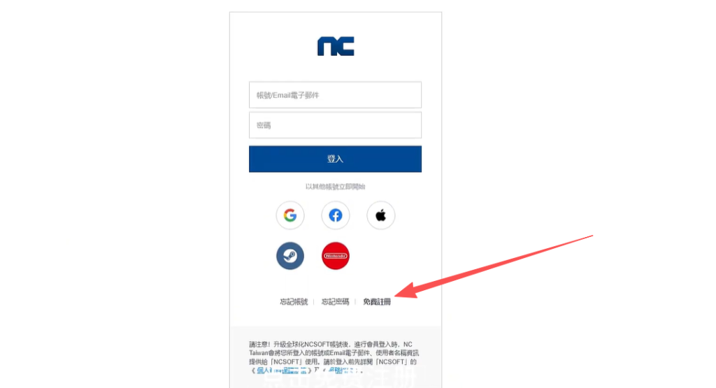 进入台服官网首页,找到并点击事前预约按钮。进入预约界面后,点击右上角的登录选项。选择免费注册,建议使用QQ邮箱作为注册账号。