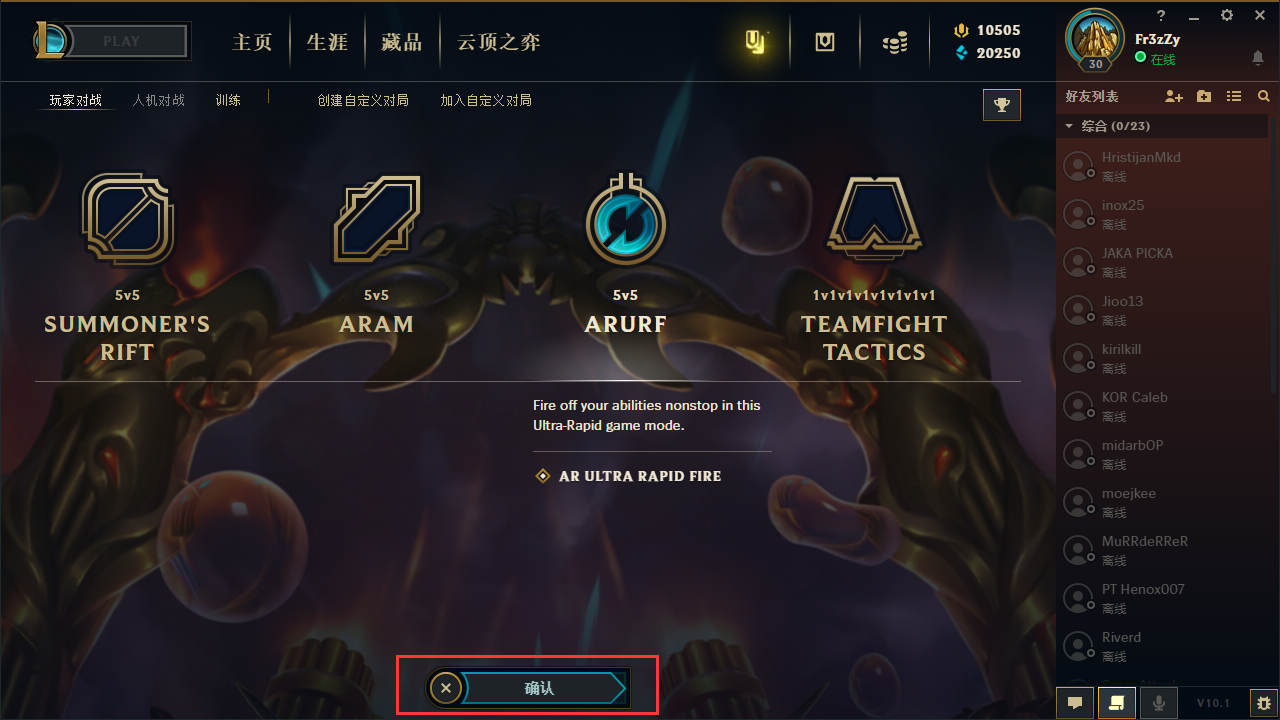 选择“ARURF”进入游戏即可: