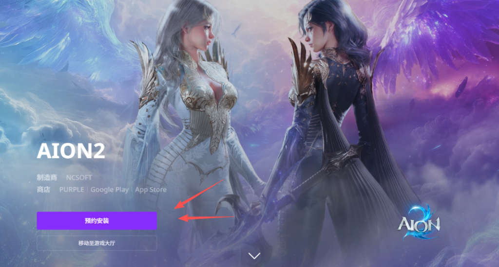注册好账号后,返回启动器首页,此时永恒之塔2的游戏图标清晰可见。点击图标下方紫色的预约安装按钮完成预约。