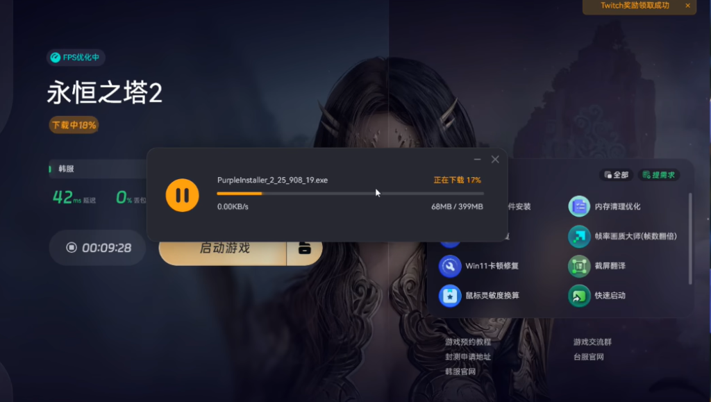 成功登录后直接在Purple模拟器内搜索永恒之塔2,找到游戏后点击下载按钮,游戏客户端便会开始下载。下载完成后,按照系统给出的安装提示,逐步完成游戏的安装步骤。
