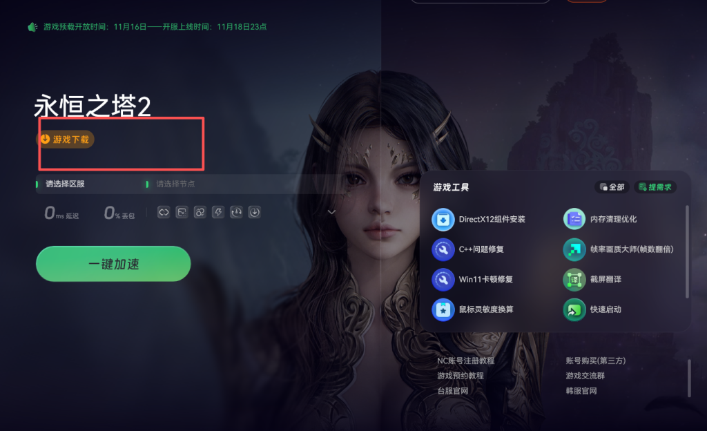 成功登录或注册账号并进入启动器后,在启动器中找到永恒之塔2游戏,点击预约安装按钮,系统便会自动开始预下载游戏。