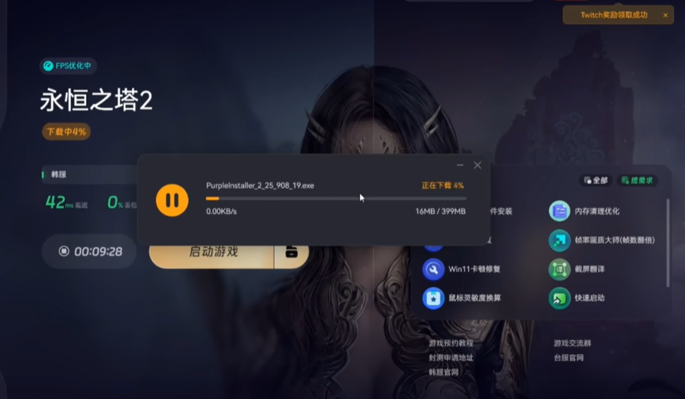 为保证下载和注册过程顺利无阻,小编建议大家使用奇游加速工具对游戏进行加速。之后点击游戏下载选项,就能实现一键下载,并且会自动安装purple平台,整个操作既简便又高效。
