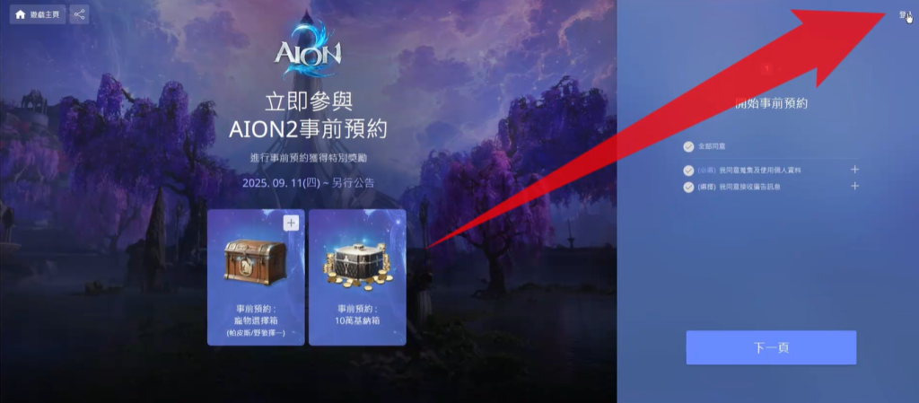 账号注册好之后接下来进行事前预约。登录已安装好的purple平台,在平台主页很容易就能找到永恒之塔2的入口,点击事前预约选项。此时页面会自动跳转至官网,点击同意按钮就哭呀了。