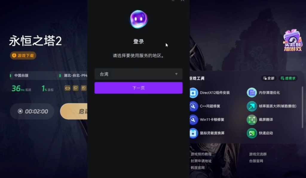 在开始注册账号前,需先关注可能遇到的问题:因游戏为台服,部分玩家可能出现登录失败、Purple 平台无法打开或闪退等情况。为解决这类问题、提升下载与登录稳定性,建议先借助奇游加速工具,对永恒之塔 2 台服进行加速优化,优化完成后再进行后续操作。