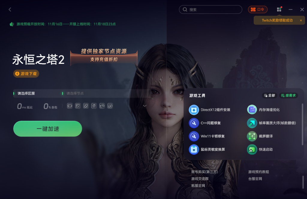 首先,你需要找到游戏的台服官网,直接用搜索引擎搜“永恒之塔2官网”就能找到。有时候官网加载会比较慢,如果遇到这种情况,可以开一个游戏加速工具来提升访问速度。