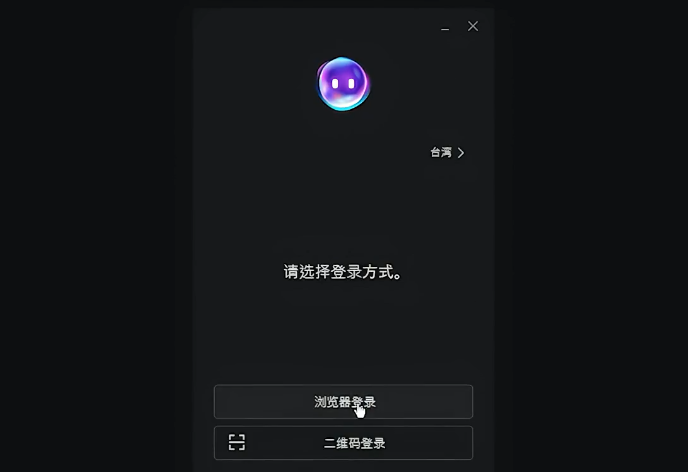 运行之后地区选台湾,保持登录状态,点浏览器登录,输入账号密码,稍等一会儿就能成功进入平台了,以后游戏就从这里下载。