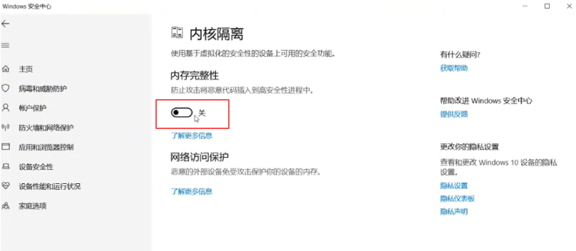 在 Windows 系统中内核隔离功能可能会对 CPU 虚拟化产生影响。玩家可以打开 Windows 安全中心,在设备安全性选项中找到内核隔离,进入详细信息页面后,将选项取消勾选。解除内核隔离对 CPU 虚拟化的限制,让 CPU 虚拟化功能恢复正常使用。