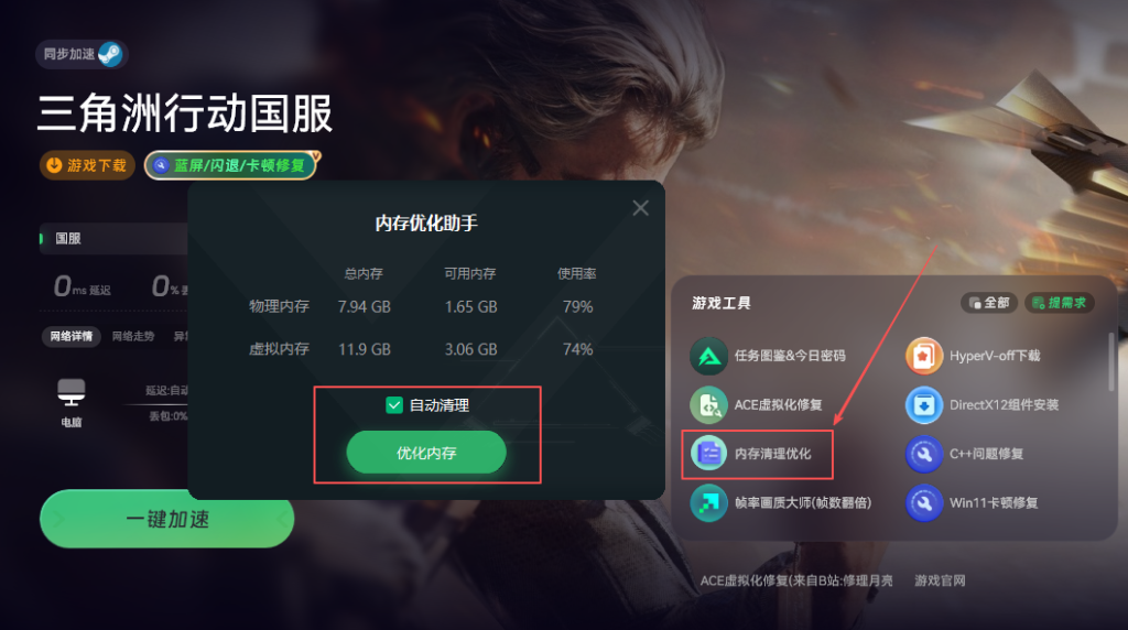在打开《三角洲行动》过程中,打开奇游,搜索”三角洲行动”。优化电脑本地网络的环境,从而解决因网络问题导致的内核隔离、虚拟内存设置、自动清理内存、关闭虚拟化引导等情况。手机党也有福利,奇游有手机加速版,加速页面能轻松切换,扫码就能得到 APP,随时随地加速都不会掉线。