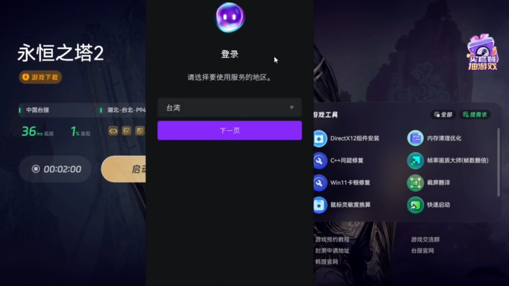 为了确保后续的注册与下载操作能够稳定且顺畅地进行,首先要借助奇游加速工具来优化网络环境。打开奇游加速工具在搜索框中准确输入永恒之塔2,随后从弹出的选项中挑选出对应的加速项,并开启加速功能。