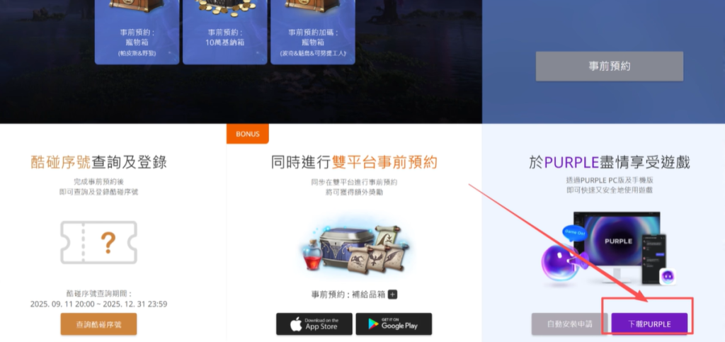 预约成功后,页面下方会出现一个下载选项,点击右下角的“下载 purple”。