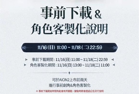 页面上显示,预下载是从11月16号上午11点开始的。而创建角色是在两小时后,也就是当天下午1点开放。所以如果你想抢到好听的名字或者加入热门阵营,建议在这两小时内完成下载。