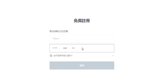 选邮箱注册、地区台湾,填一个年满18岁的生日,接着输入邮箱、收取验证码、设置密码,账号就注册好了。
