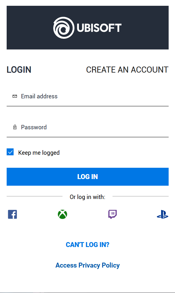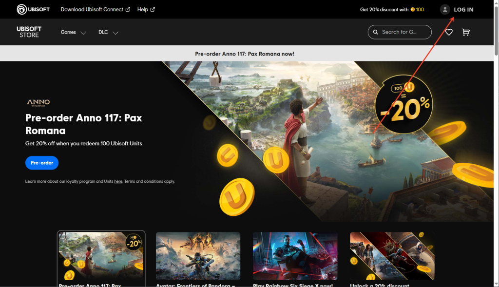 1.前往育碧官网并点击右上角【LOG IN】