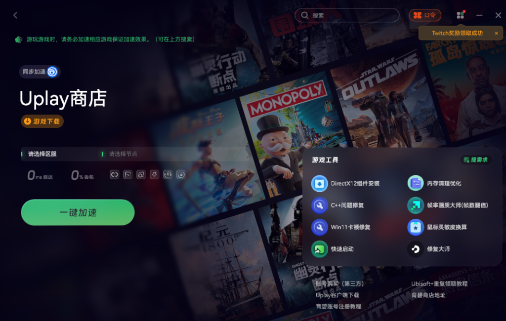 在打开育碧Uplay过程中,打开奇游,搜索”育碧Uplay”。优化电脑本地网络的环境,从而解决因网络问题导致的育碧平台打不开、失去连接、登录不上等问题,顺利解决问题。