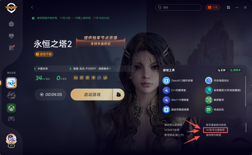 官网打不开和收不到验证码是网络问题导致的,我们可以使用奇游加速《永恒之塔2》台服即可正常注册。